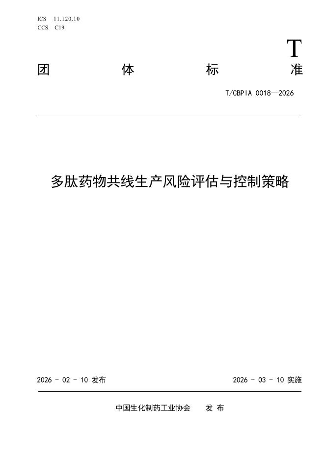 T/CBPIA 0018-2026 多肽药物共线生产风险评估与控制策略
