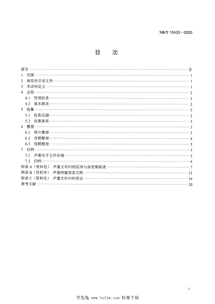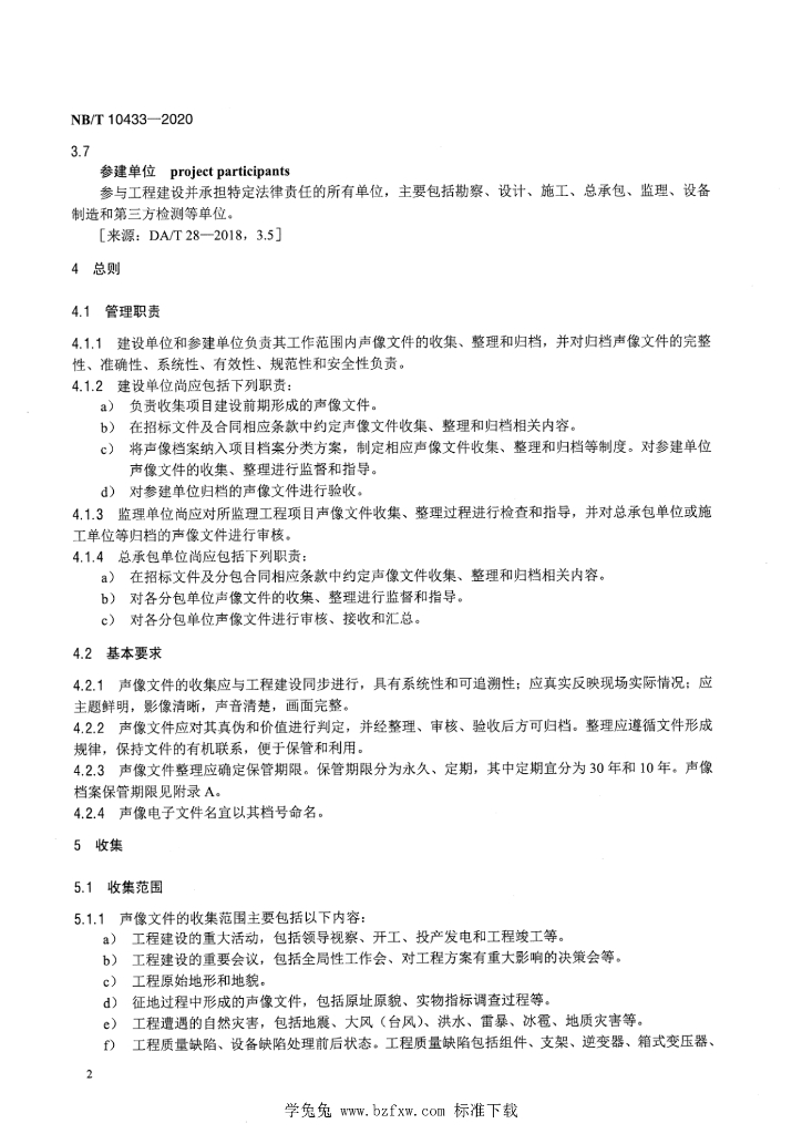 NB/T 10433-2020 光伏发电建设项目声像文件收集与归档规范