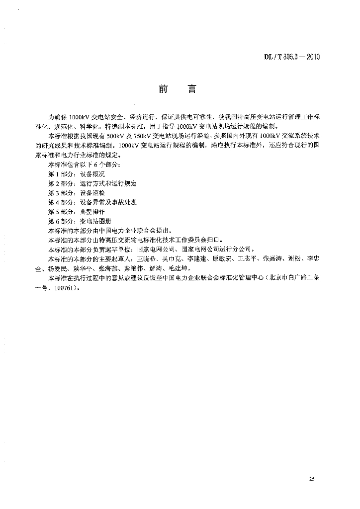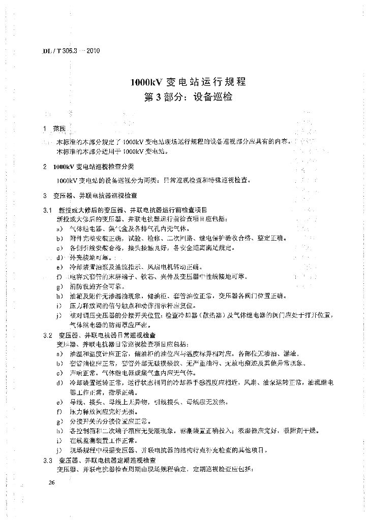 DL/T 306.3-2010 1000kV变电站运行规程 第3部分:设备巡检