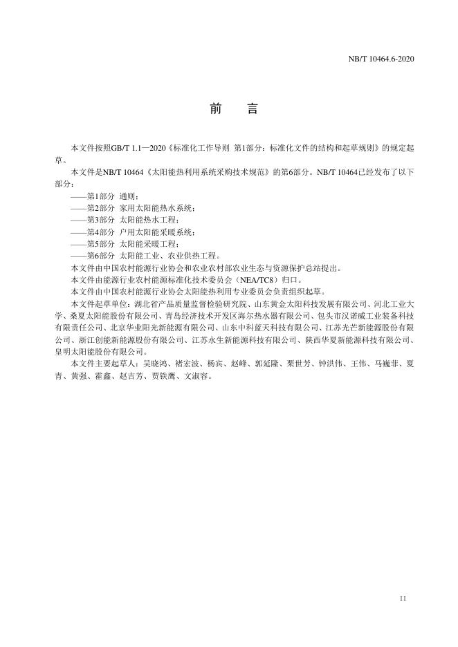 NB/T 10464.6-2020 太阳能热利用系统采购技术规范 第6部分:太阳能工业、农业供热工程