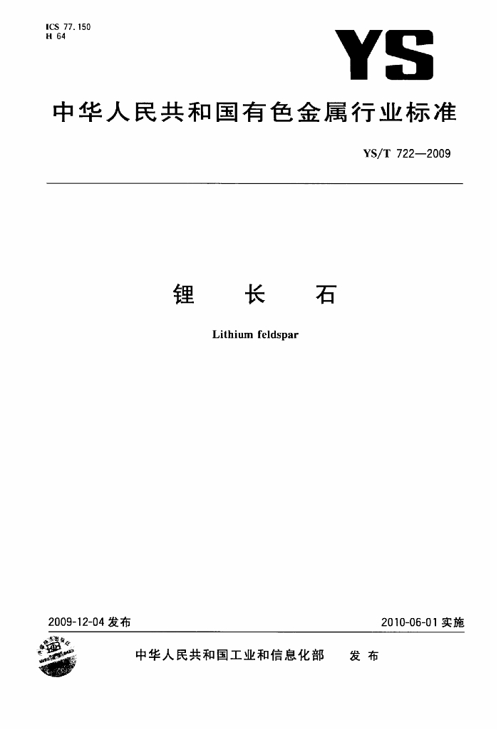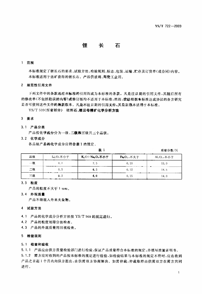 YS/T 722-2009 锂长石