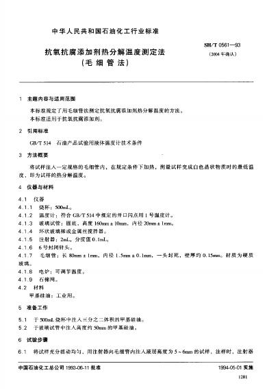 SH/T 0561-1993 抗氧抗腐添加剂热分解温度测定法毛细管法