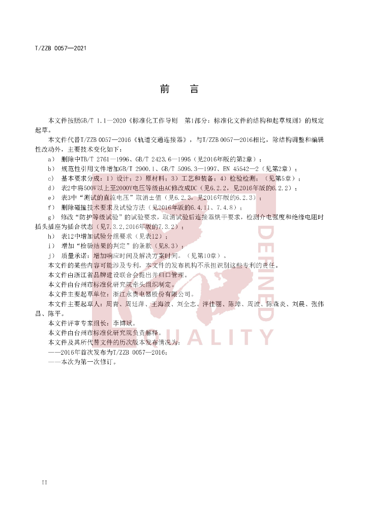 本标准由台州市标准化研究院牵头组织制订。、本标准主要起草单位:浙江永贵电器股份有限公司。