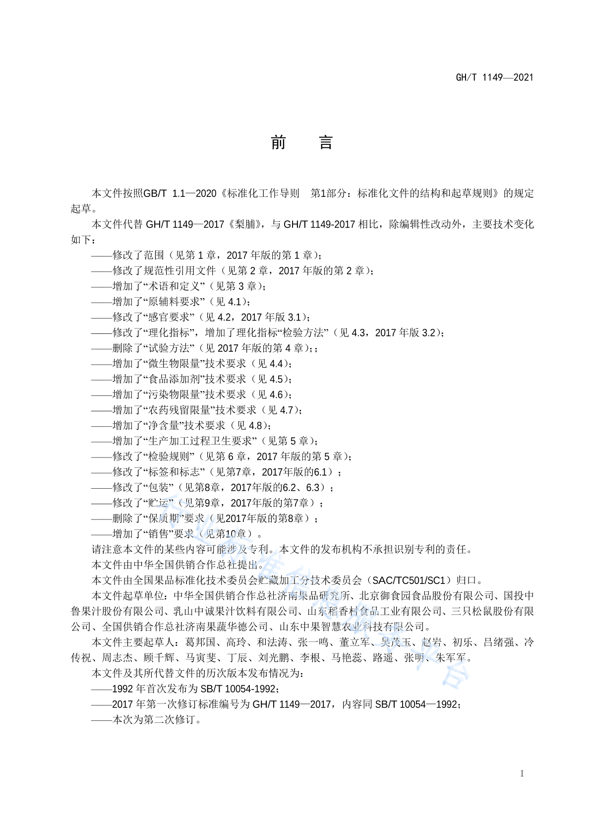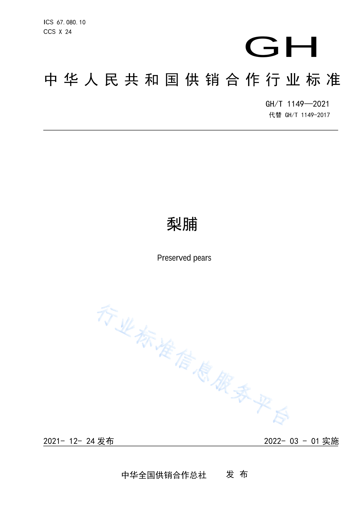 - 代替标准:GH/T 1149-2017