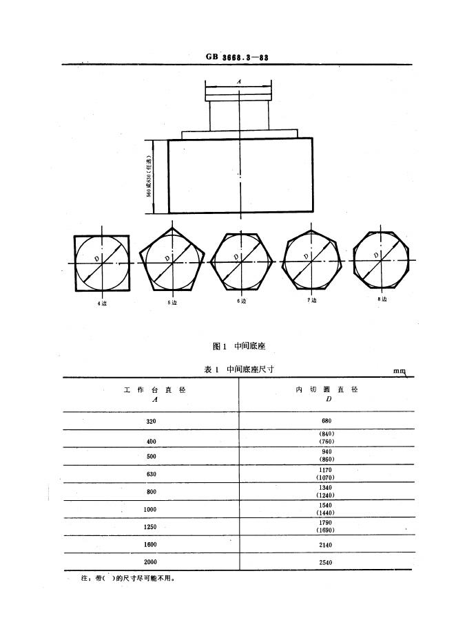GB/T 3668.3-1983 组合机床通用部件 回转工作台和回转工作台用多边形中间底座尺寸