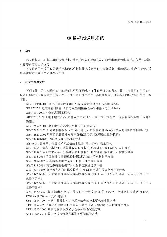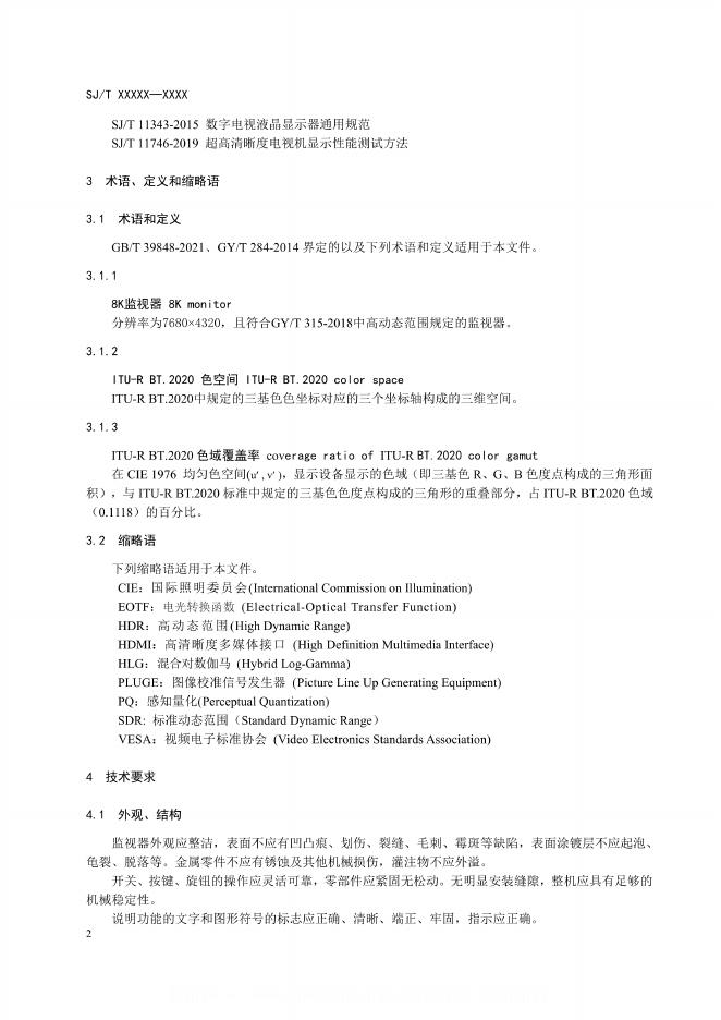 SJ/T 11928-2024 8K监视器通用规范(报批稿)