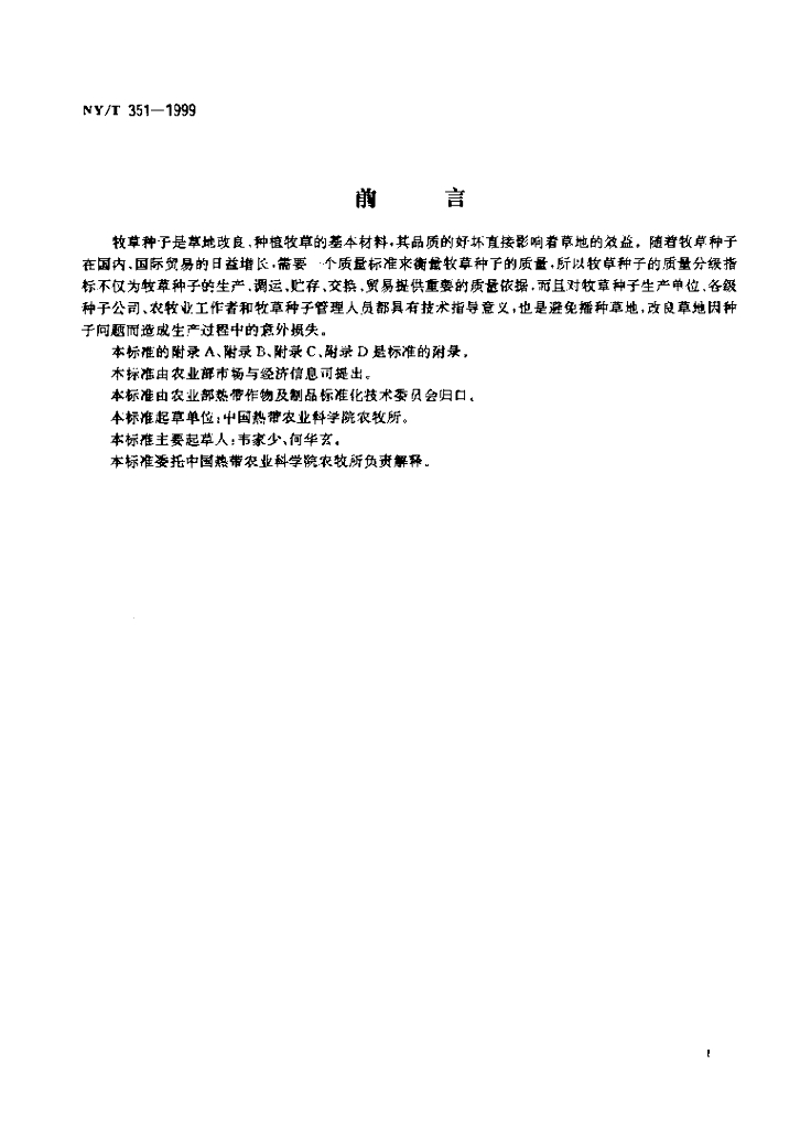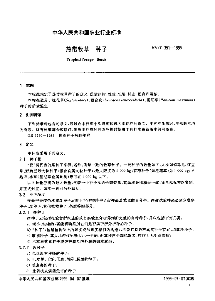 NY/T 351-1999 热带牧草 种子