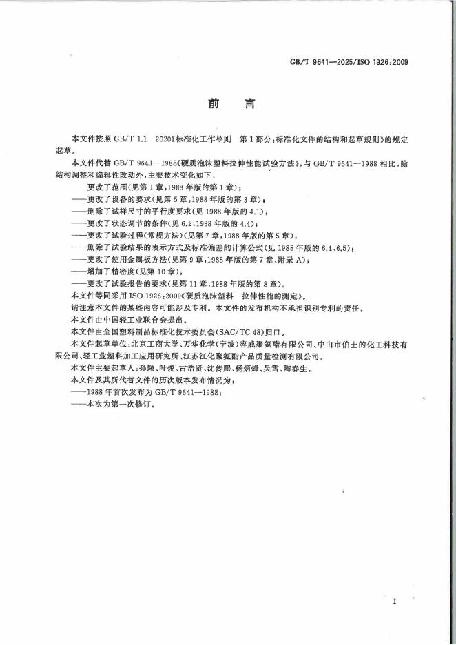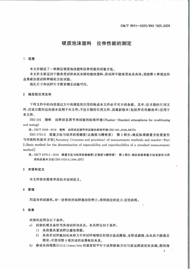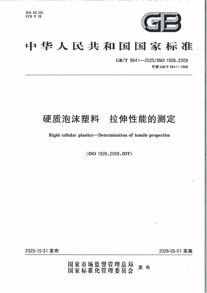GB/T 9641-2025 硬质泡沫塑料 拉伸性能的测定