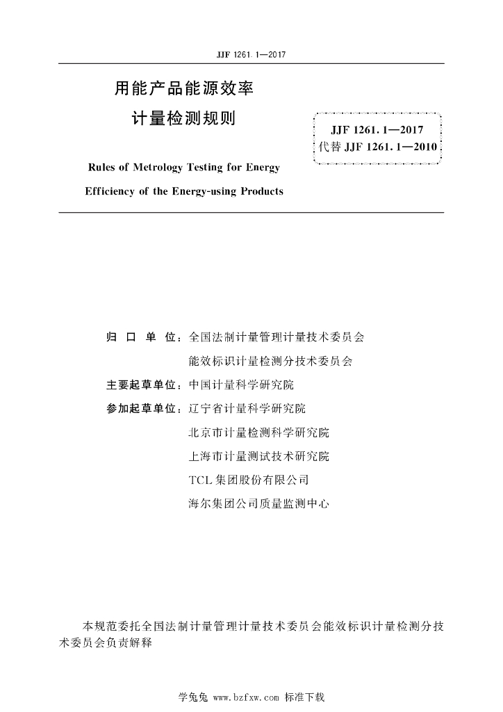 中国计量科学研究院、辽宁省计量科学研究院、北京市计量检测科学研究院、上海市计量测试技术研究院、TCL集团股份有限公司、海尔集团公司质量监测中心