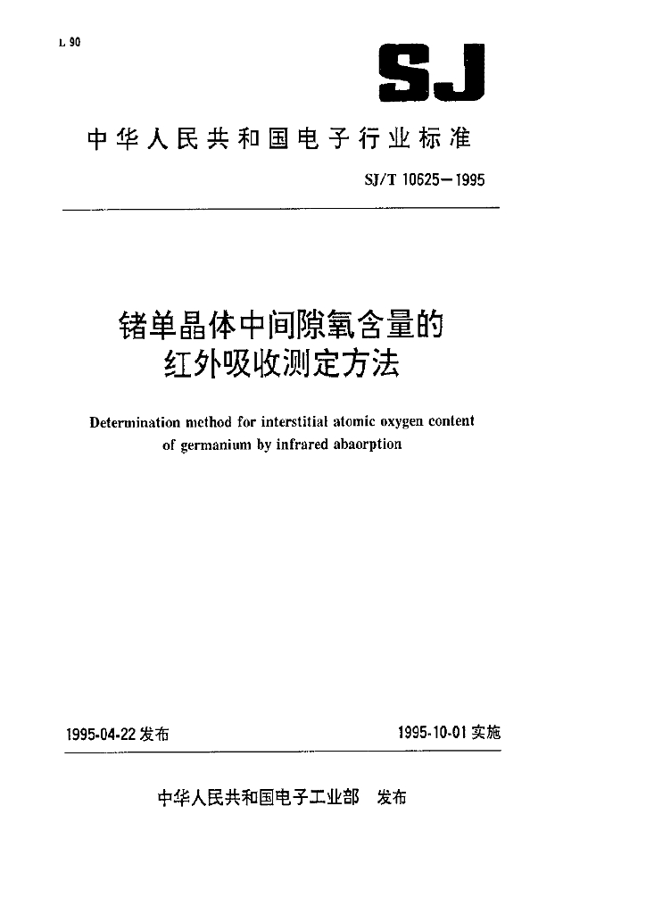 SJ/T 10625-1995 锗单晶中间隙氧含量的红外吸收测量方法