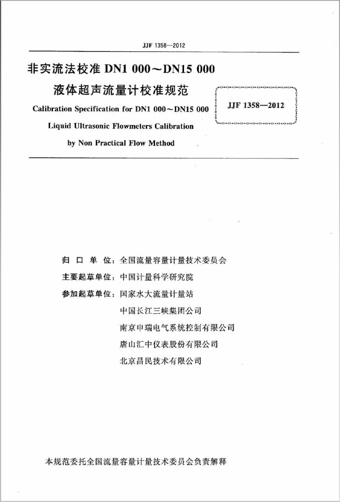 中国计量科学研究院、国家水大流量计量站、中国长江三峡集团公司、南京申瑞电气系统控制有限公司、唐山汇中仪表股份有限公司、北京昌民技术有限公司