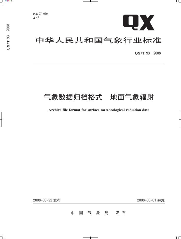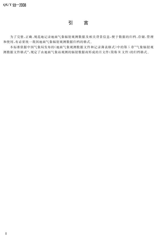 QX/T 93-2008 气象数据归档格式 地面气象辐射