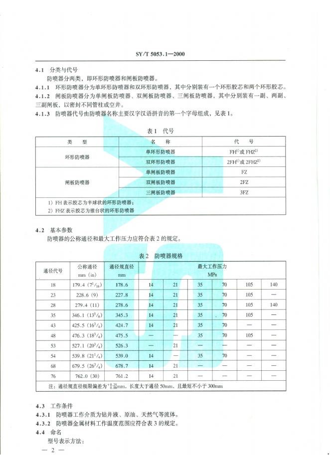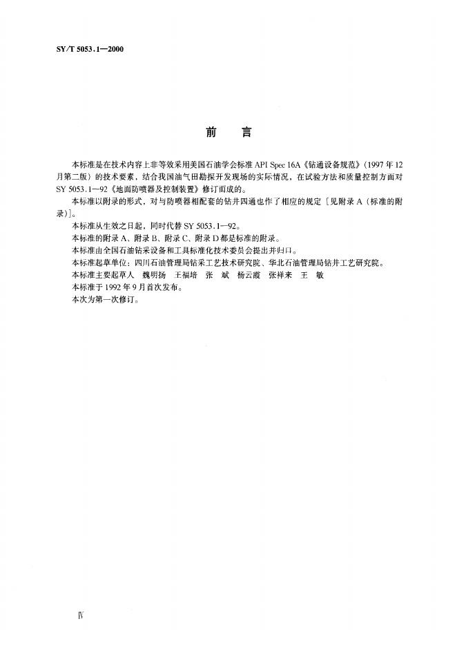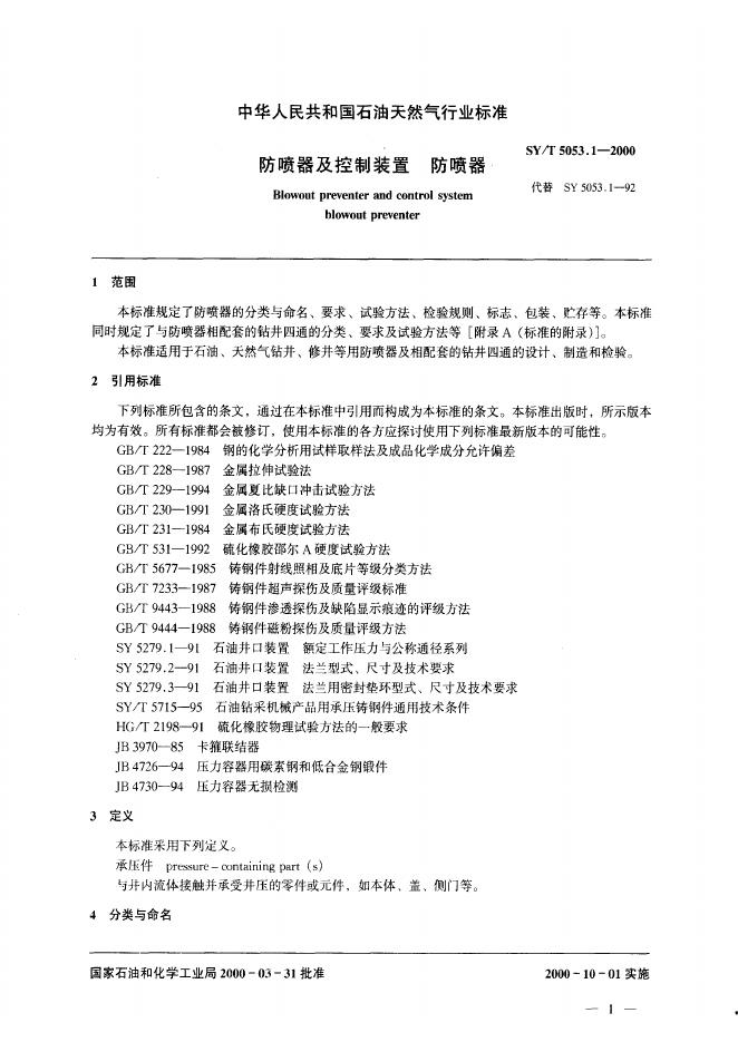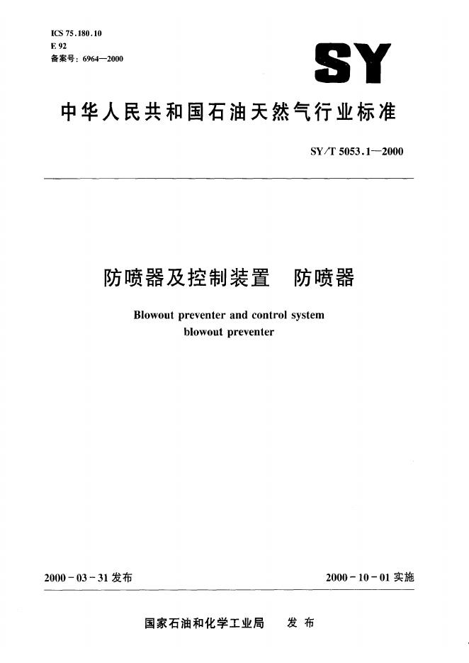 SY 5053.1-1992 地面防喷器及四通