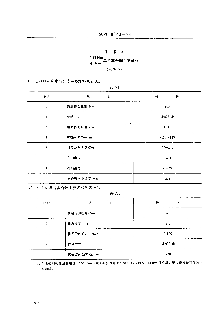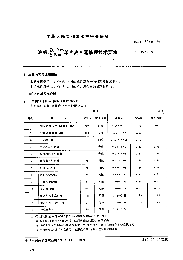 SC/T 8040-1994 渔船100Nm45Nm单片离合器修理技术要求