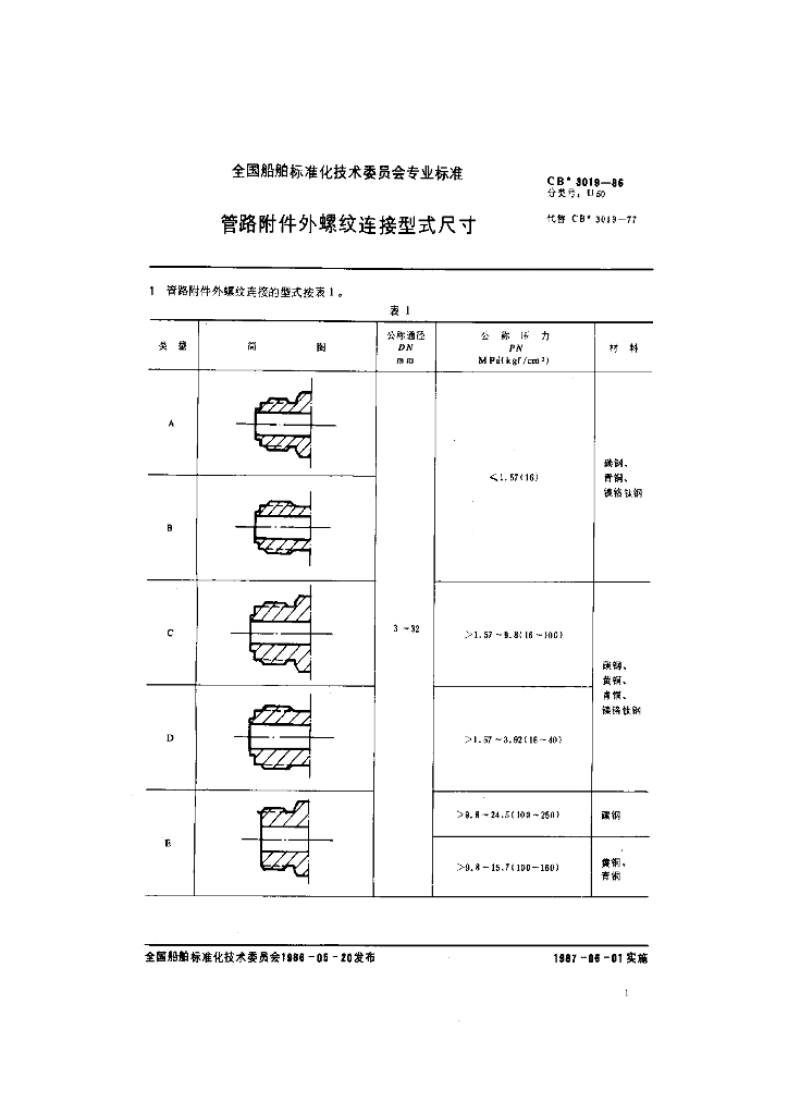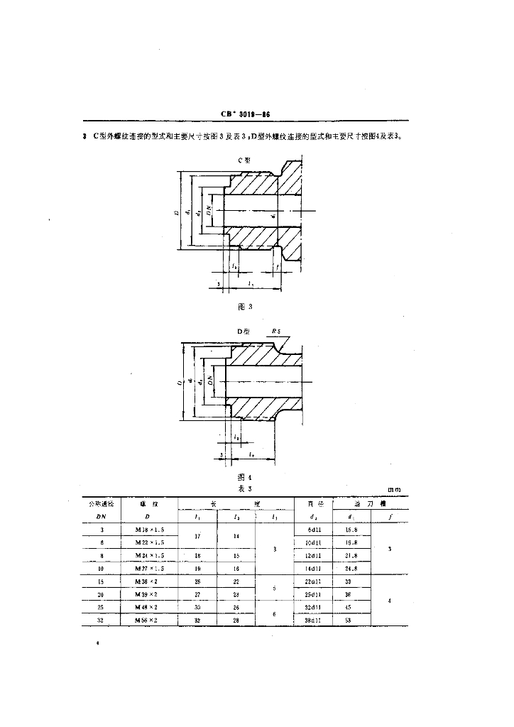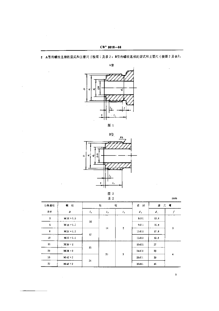 CB 3019-1986 管路附件外螺纹连接型式尺寸
