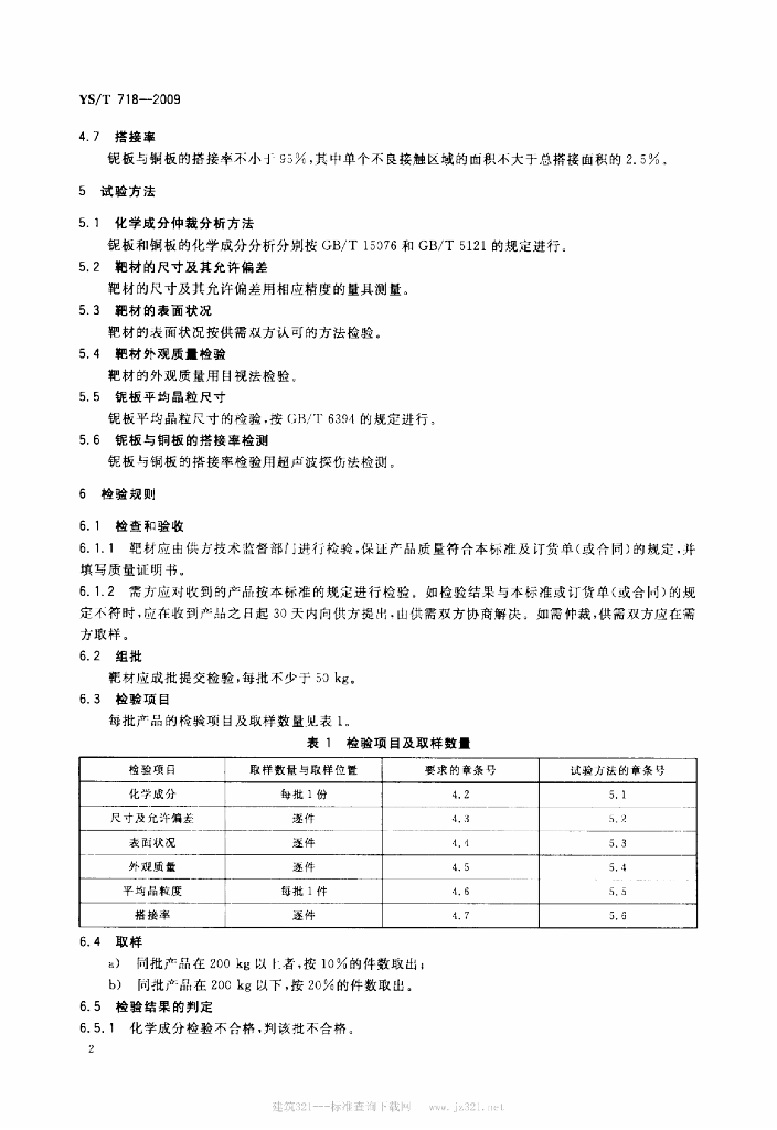 YS/T 718-2009 平面磁控溅射靶材光学薄膜用铌靶