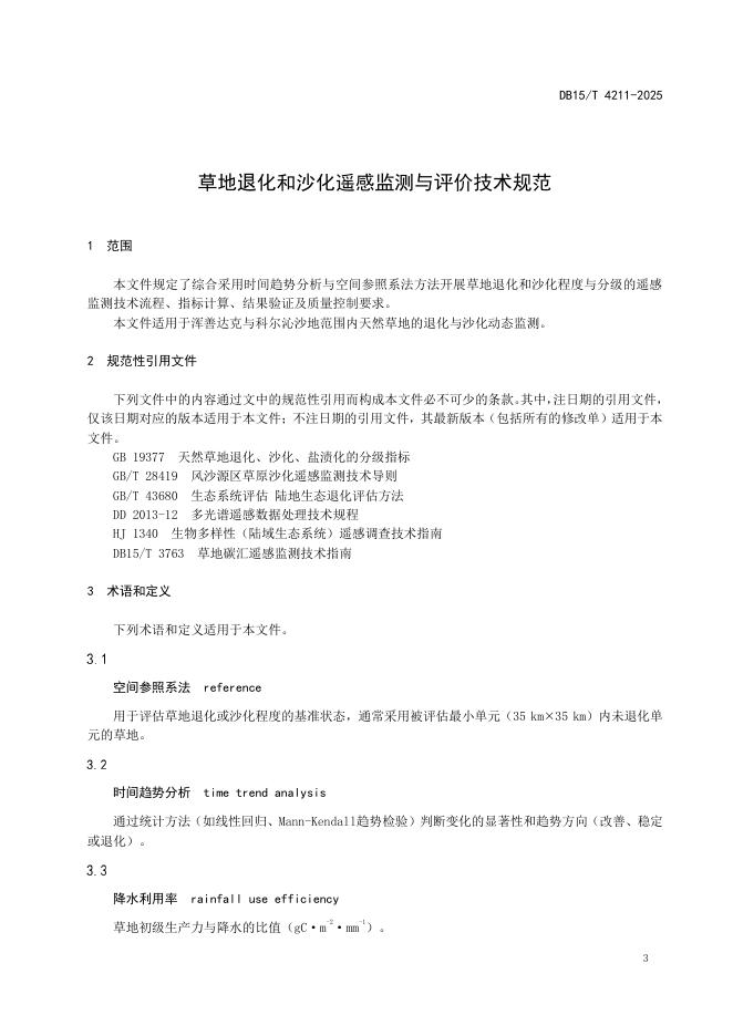 DB15/T 4211-2025 草地退化和沙化遥感监测与评价技术规范