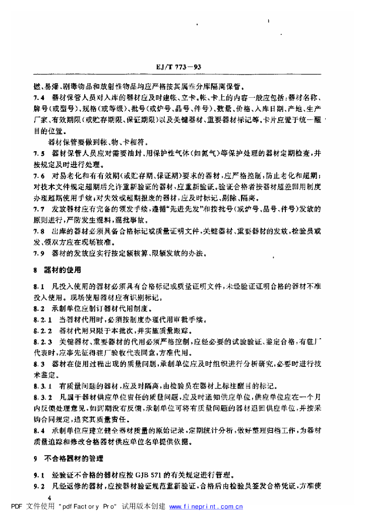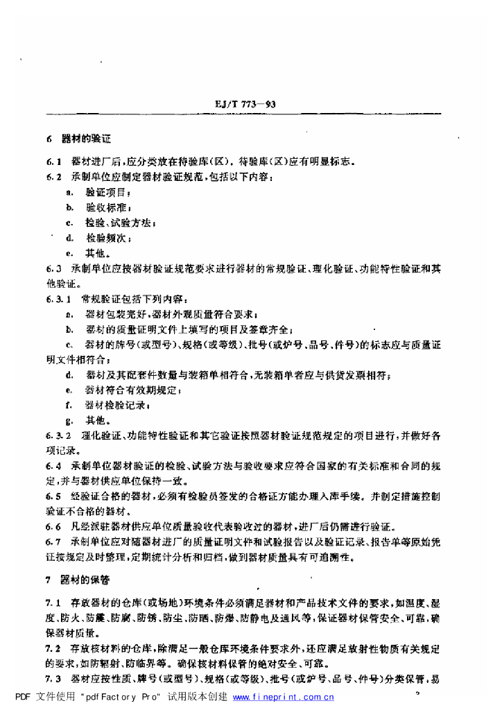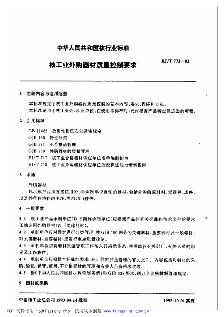 EJ/T 773-1993 核工业外购器材质量控制要求