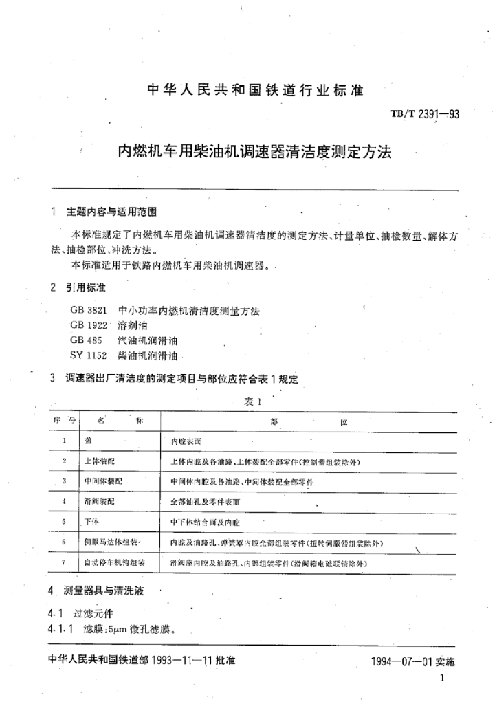 TB/T 2391-1993 内燃机车用柴油机调速器 清洁度测定方法