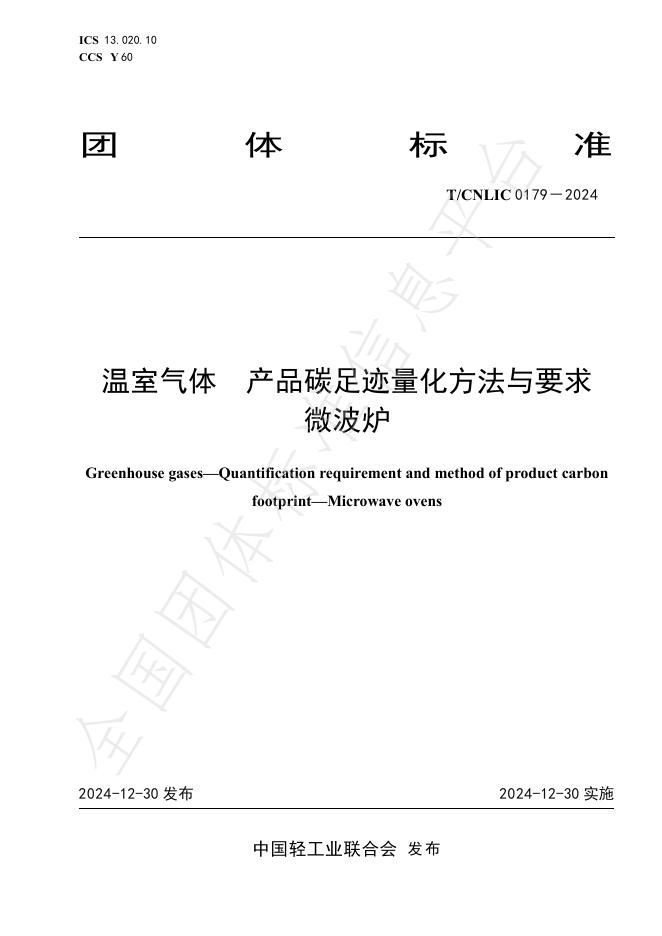 T/CNLIC 0179-2024 温室气体 产品碳足迹量化方法与要求 微波炉