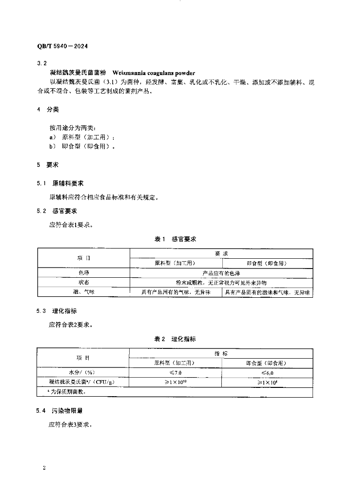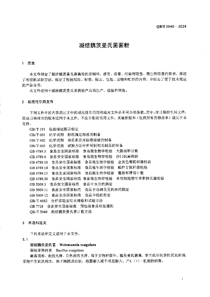 QB/T 5940-2024 凝结魏茨曼氏菌菌粉
