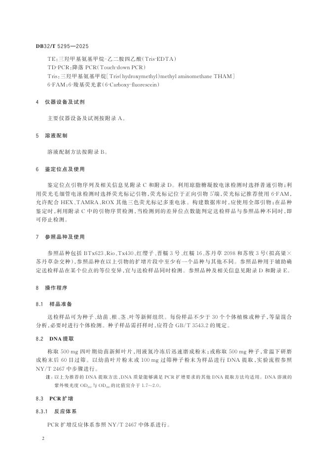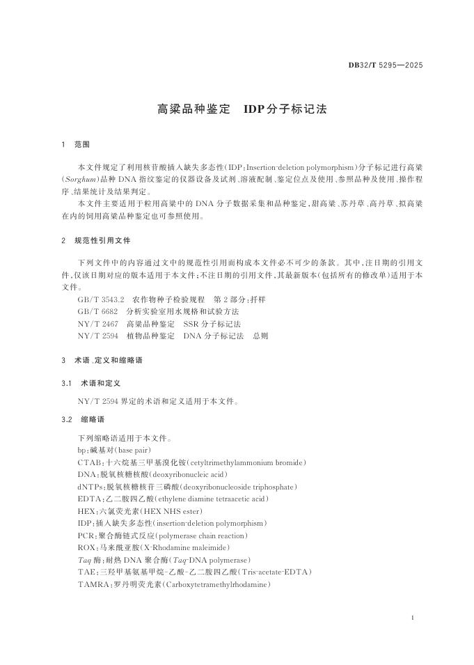 DB32/T 5295-2025 高粱品种鉴定 IDP分子标记法