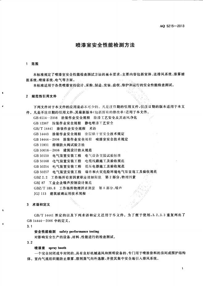 AQ/T 5215-2013 喷漆室安全性能检测方法
