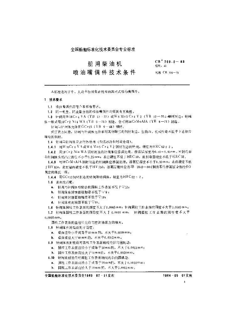CB 709.2-1983 船用柴油机喷油嘴偶件技术条件