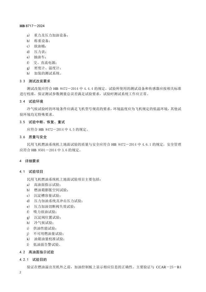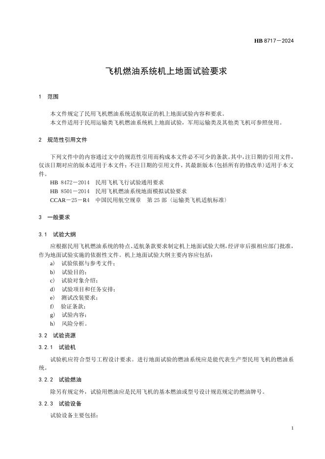 HB 8717-2024 飞机燃油系统机上地面试验要求