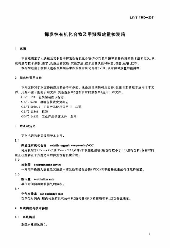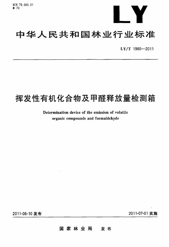LY/T 1980-2011 挥发性有机化合物(VOC)及甲醛释放量检测箱