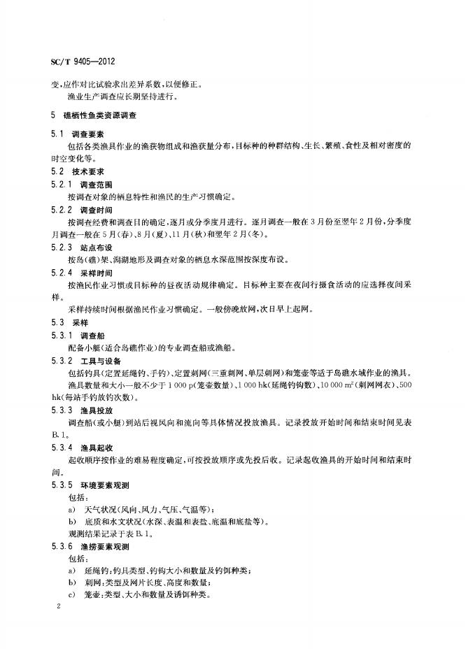 SC/T 9405-2012 岛礁水域生物资源调查评估技术规范