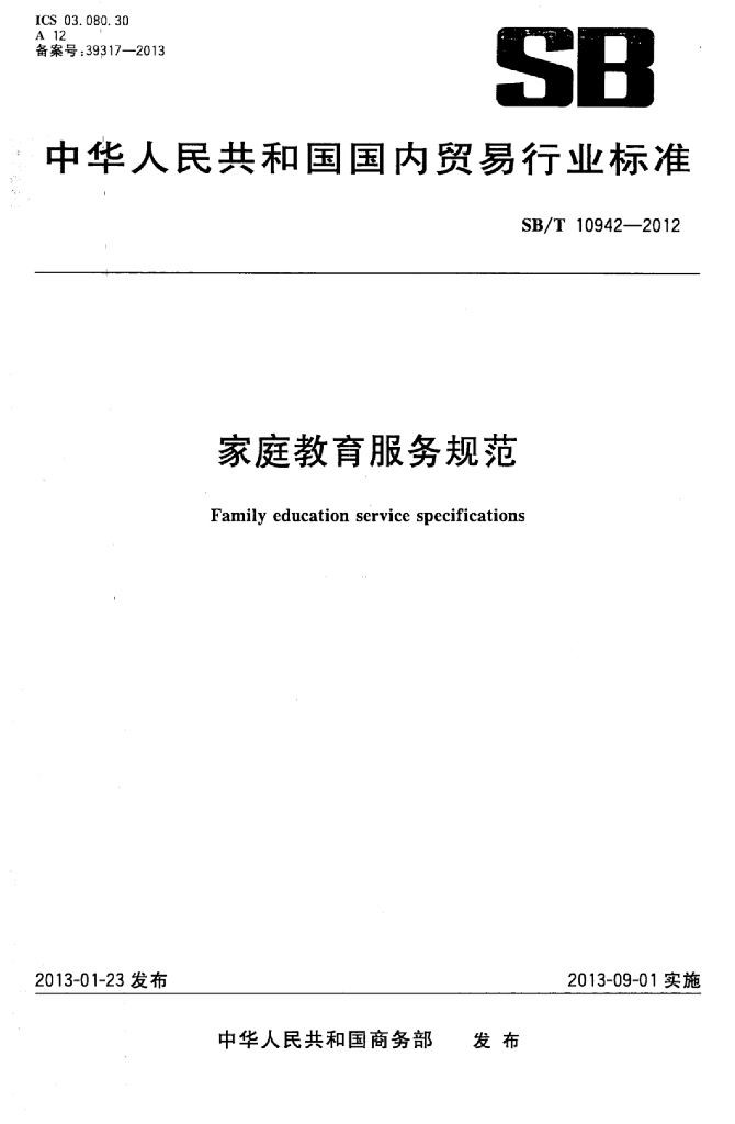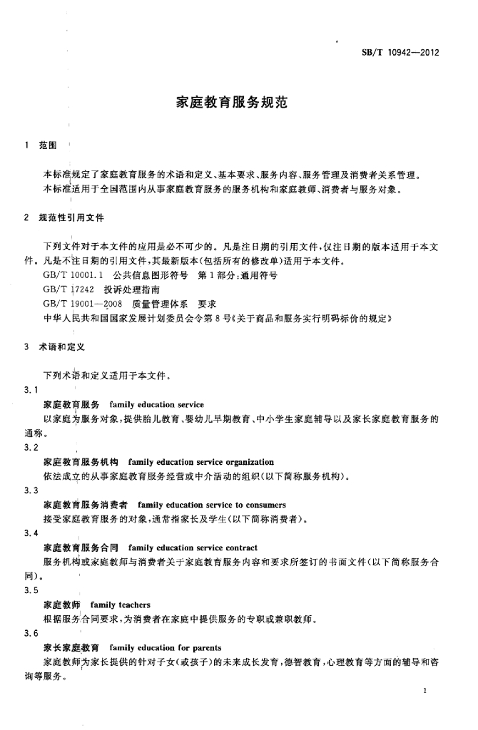 SB/T 10942-2012 家庭教育服务规范