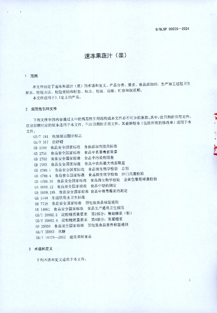 Q/BLSP 0002S-2024 速冻果蔬浆(汁)