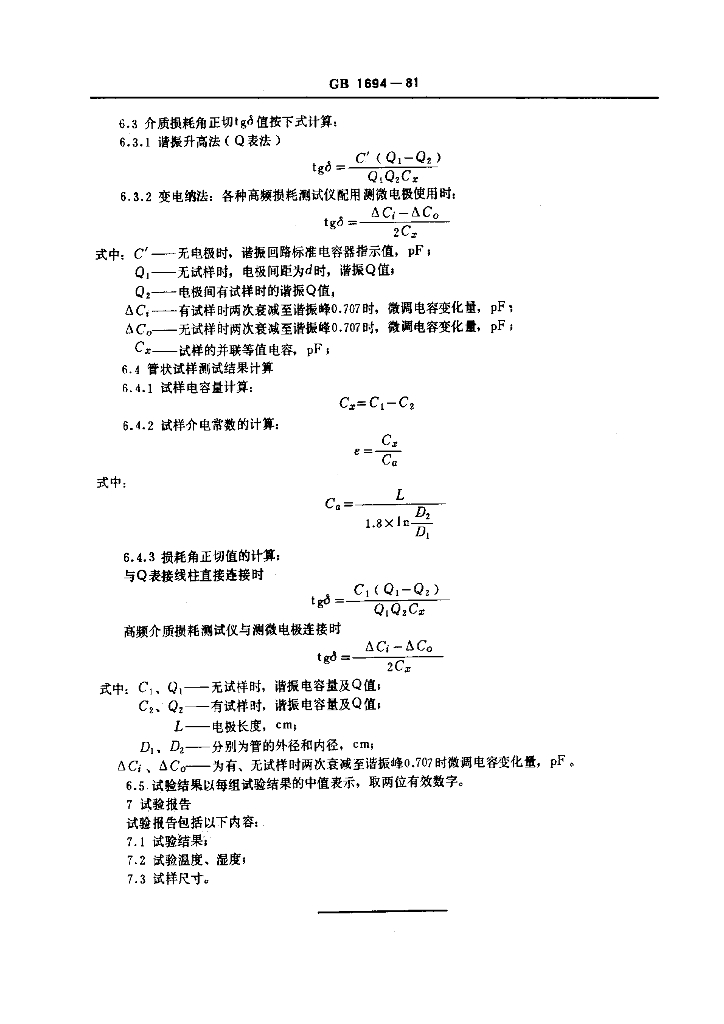 GB/T 1694-1981 硫化橡胶高频介电常数和介质损耗角正切值的测定方法