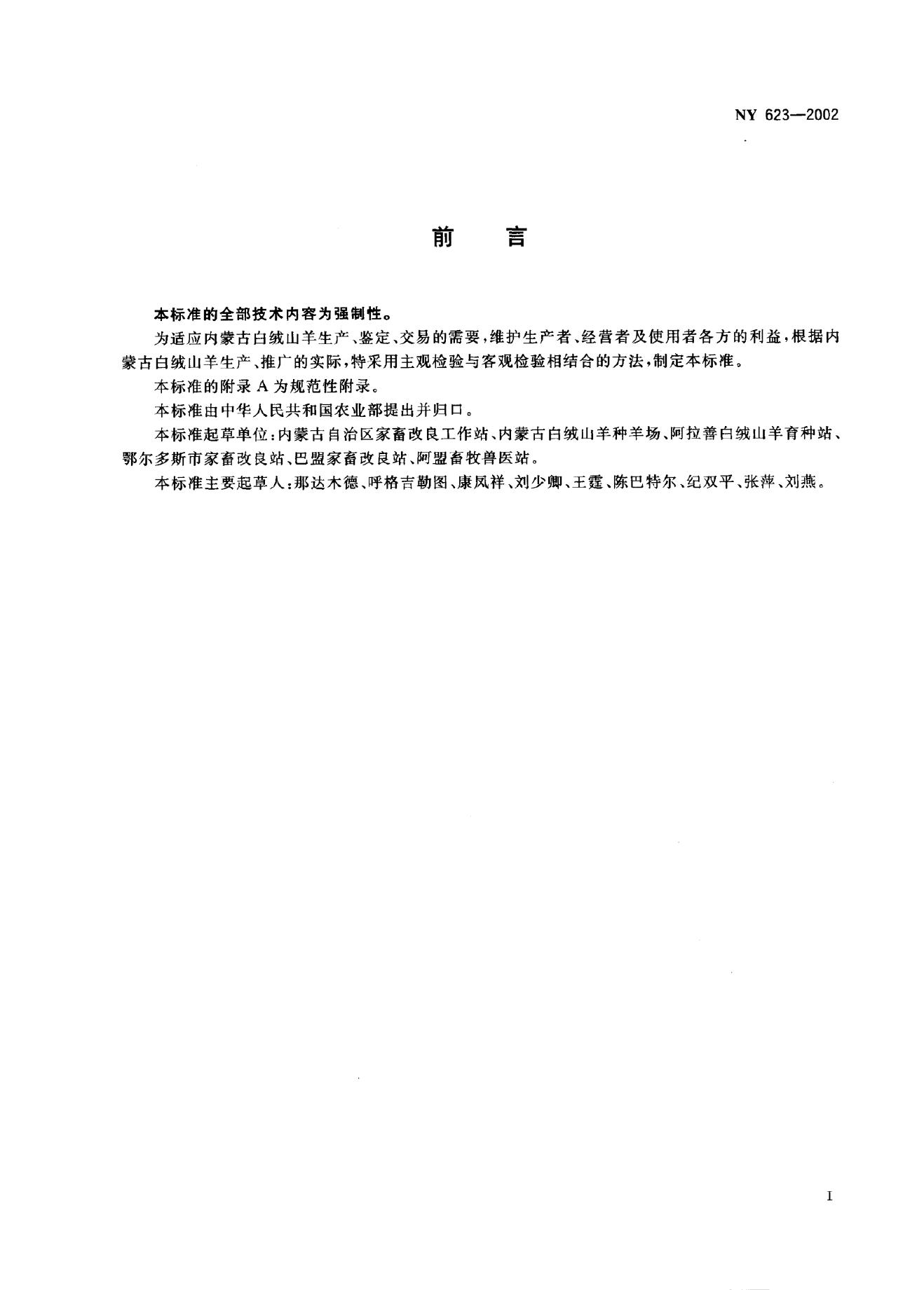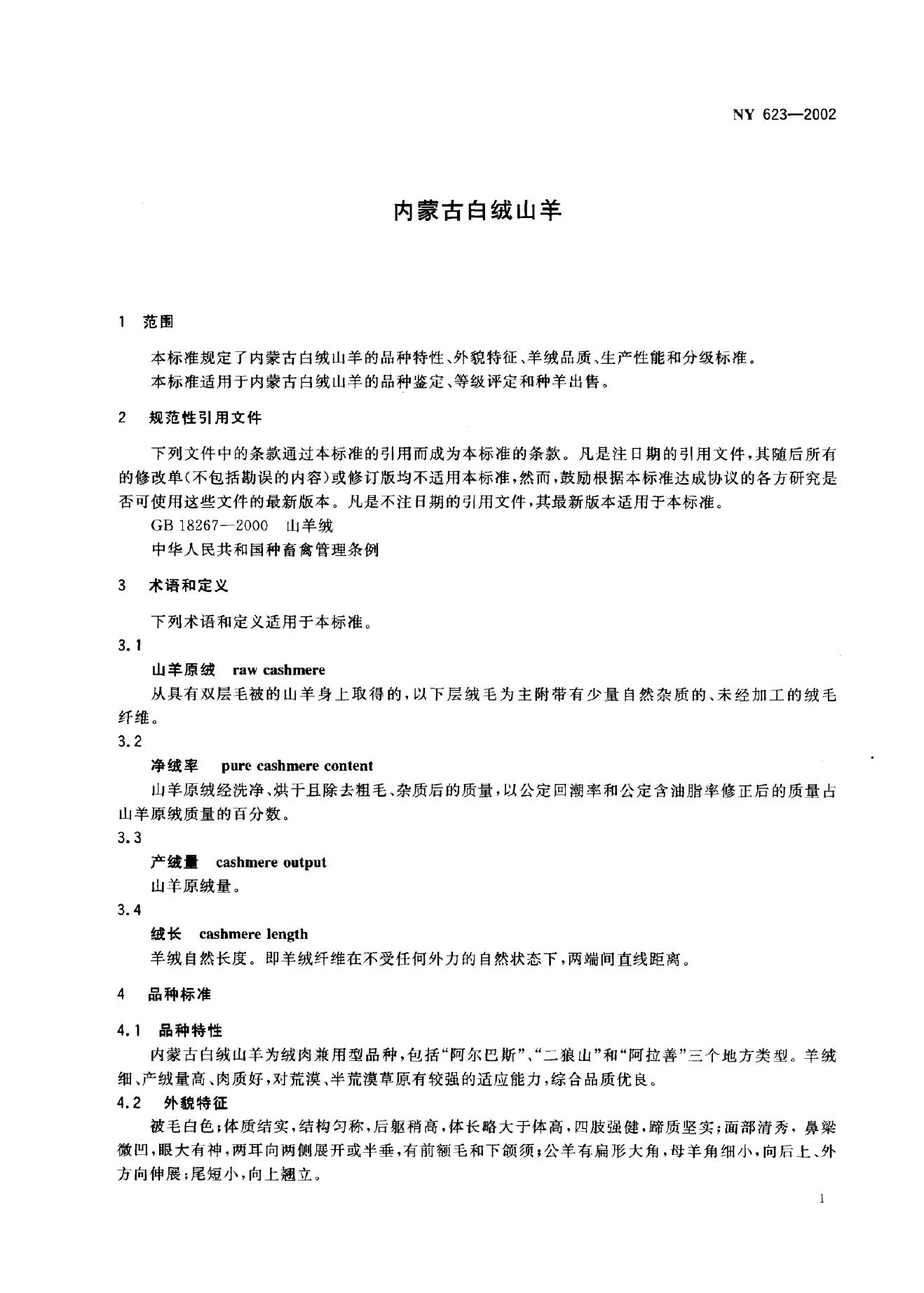 NY 623-2002 内蒙古白绒山羊
