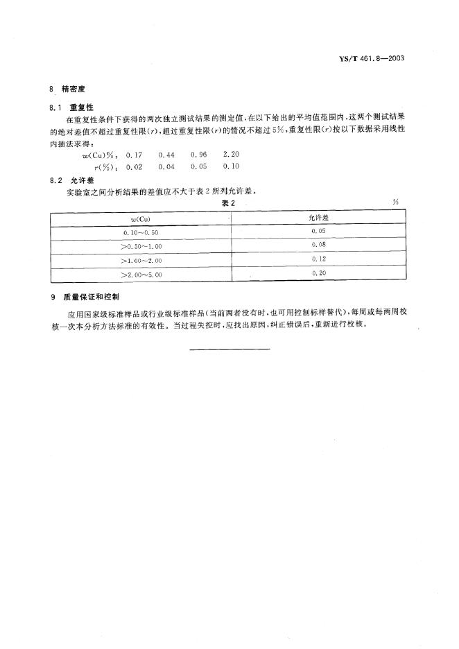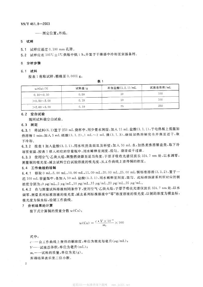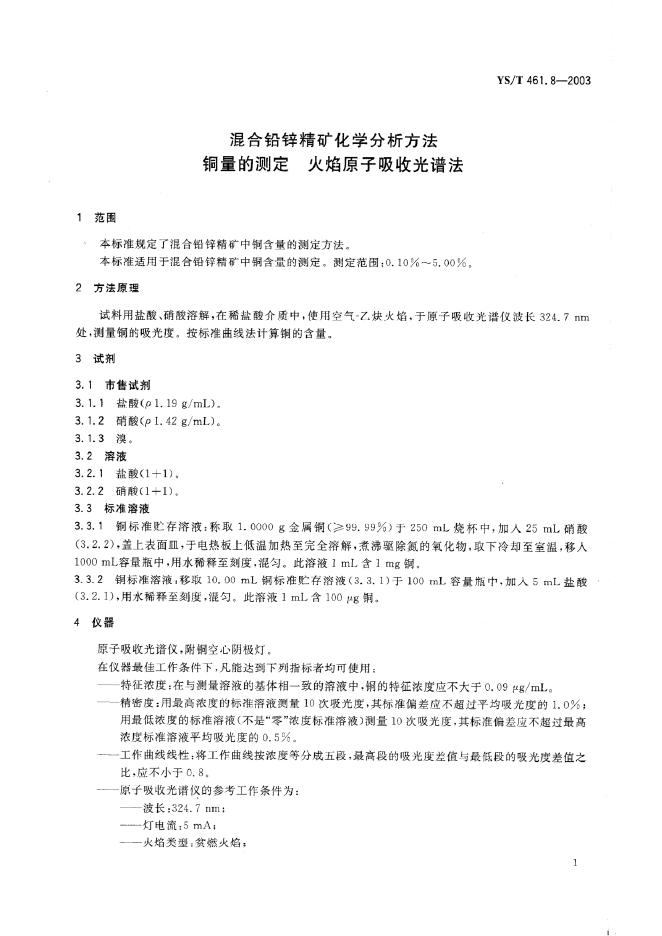 YS/T 461.8-2003 混合铅锌精矿化学分析方法 铜量的测定 火焰原子吸收光谱法
