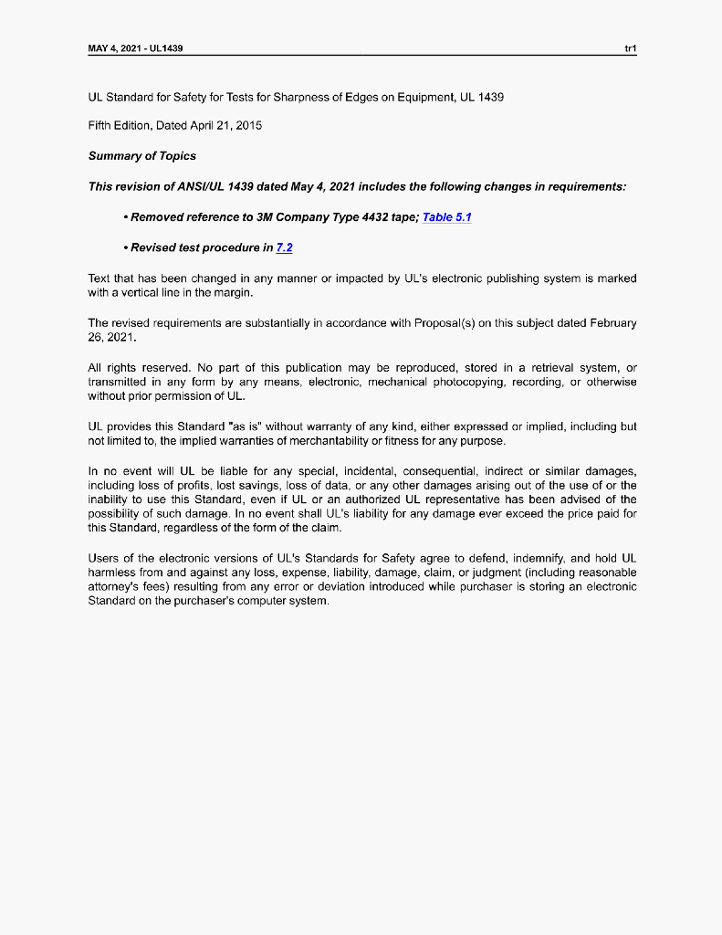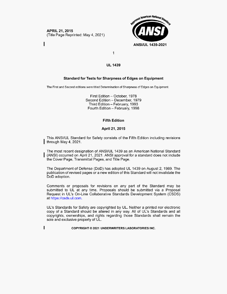 UL 1439 STANDARD FOR SAFETY Tests for Sharpness of Edges onEquipment