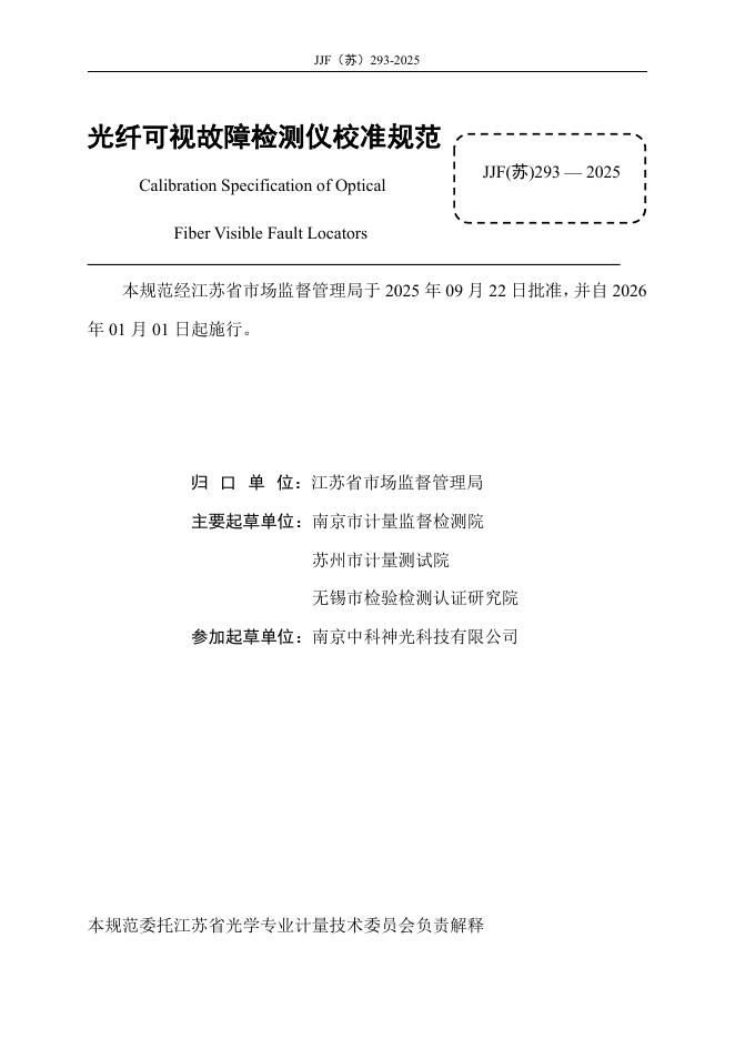 JJF(苏)293-2025 光纤可视故障检测仪校准规范