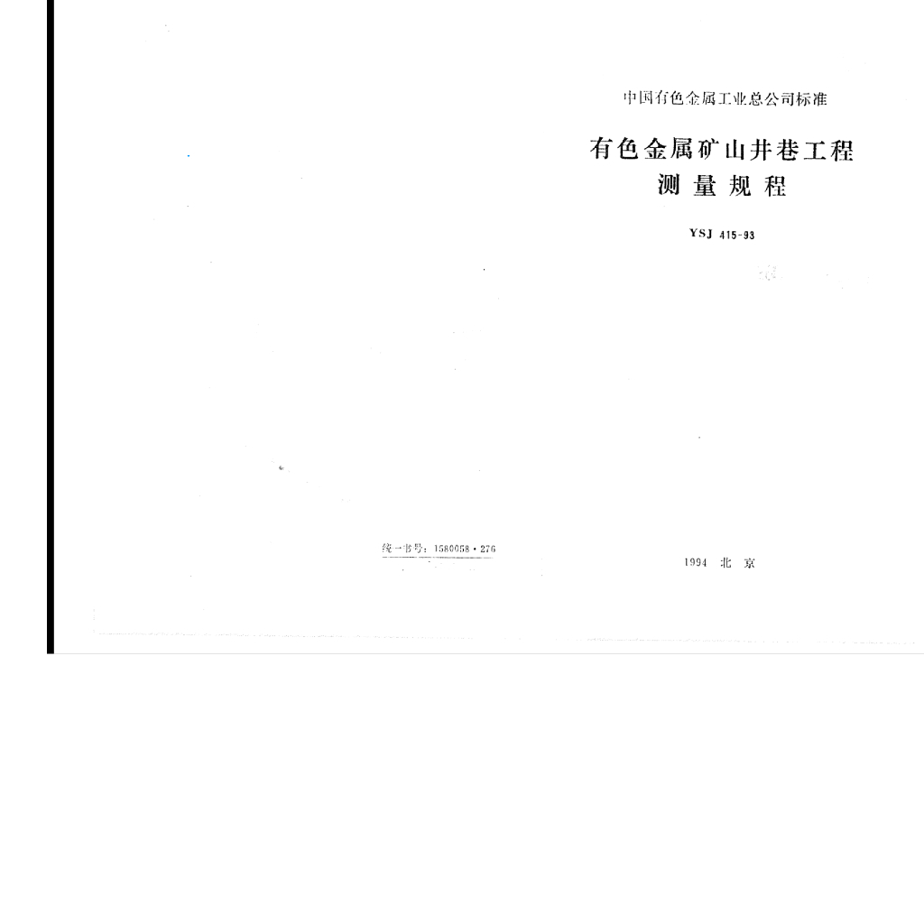 YSJ 415-1993 有色金属矿山井巷工程测量规程(附条文说明)