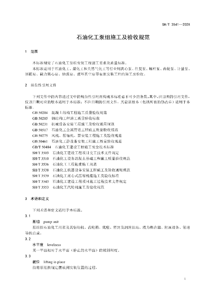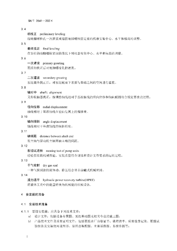 SH/T 3541-2024 石油化工泵组施工及验收规范(报批稿)