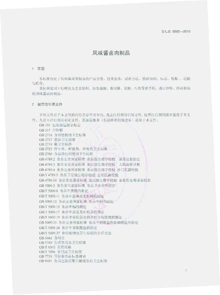 Q/LJC 0002S-2010 风味酱卤肉制品