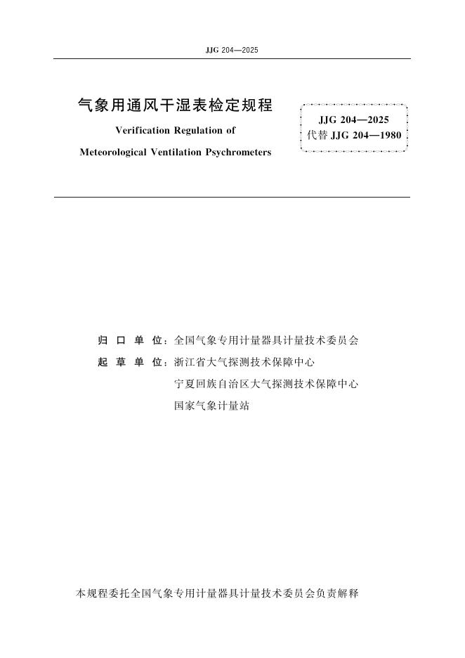 JJG 204-2025 象用通风干湿表检定规程