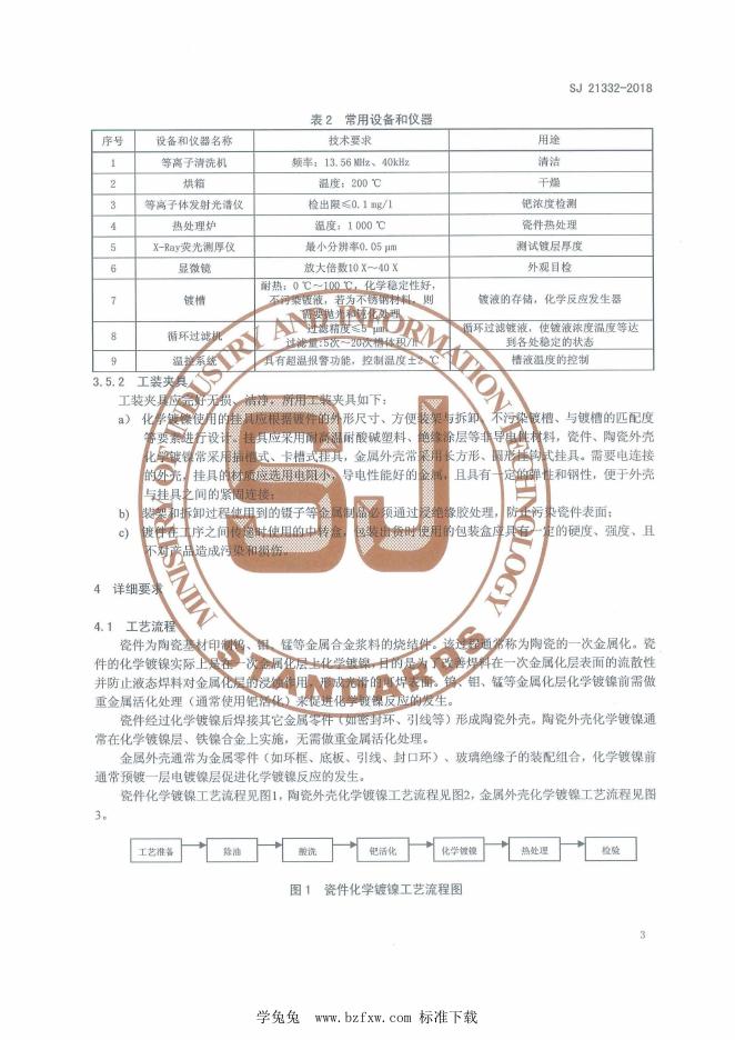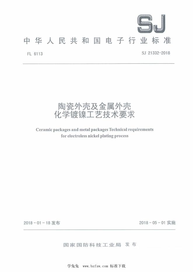 SJ 21332-2018 陶瓷外壳及金属外壳 化学镀镍工艺技术要求