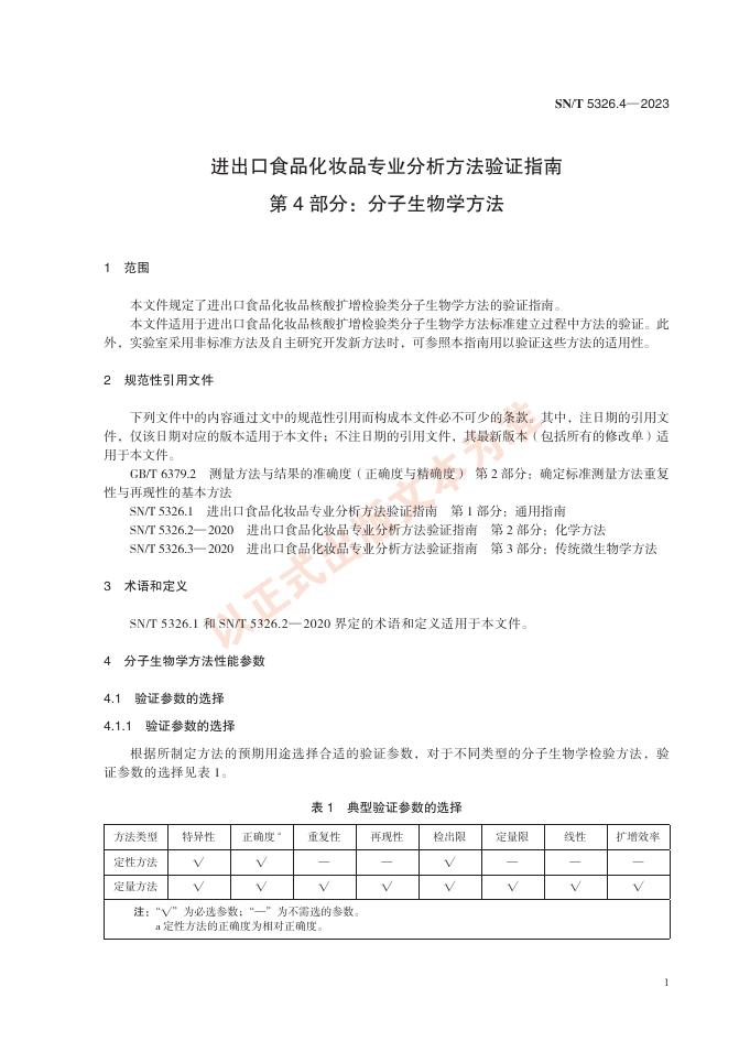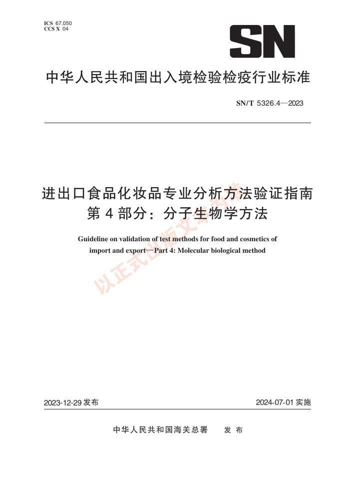SN/T 5326.4-2023 进出口食品化妆品专业分析方法验证指南 第4部分:分子生物学方法