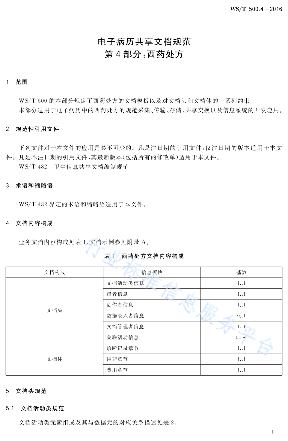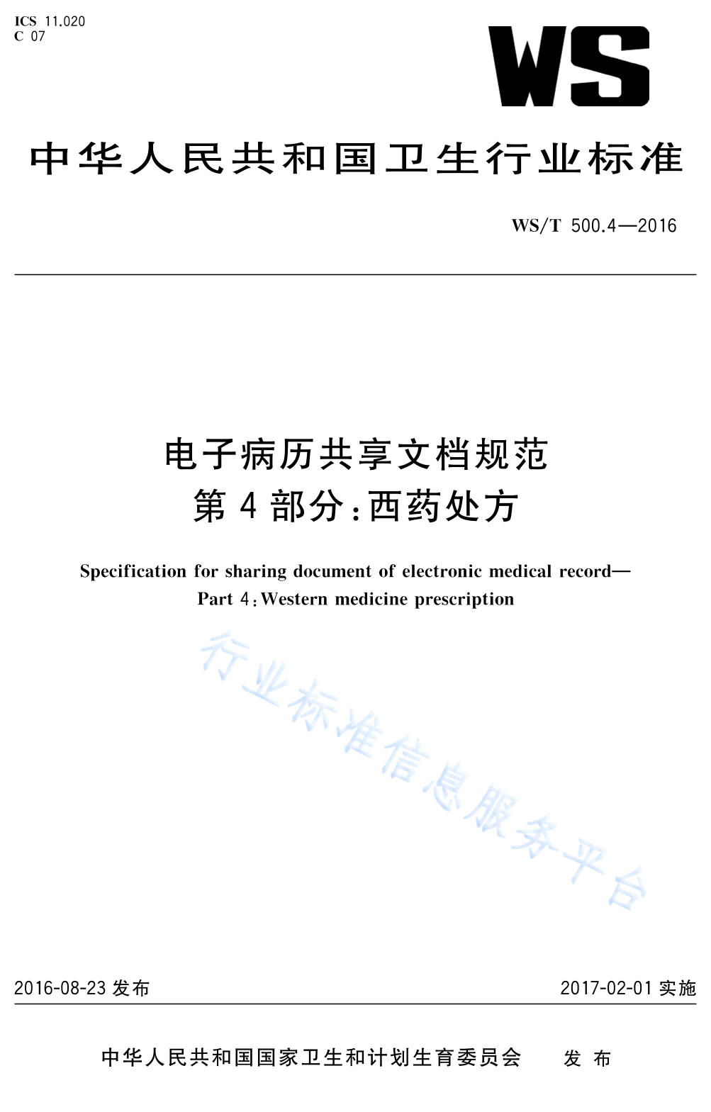 WS/T 500.4-2016 电子病历共享文档规范 第4部分:西药处方