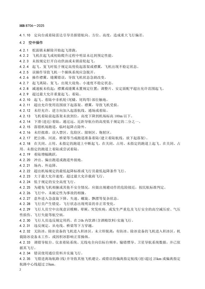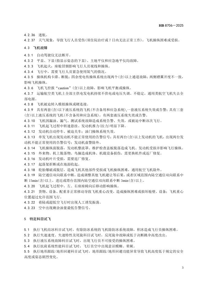HB 8706-2025 民用飞机试飞飞行事故征候判定标准