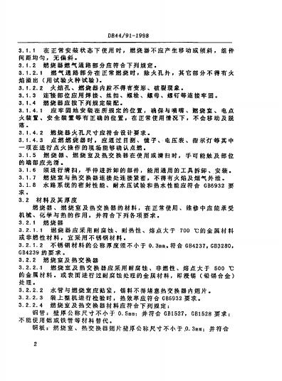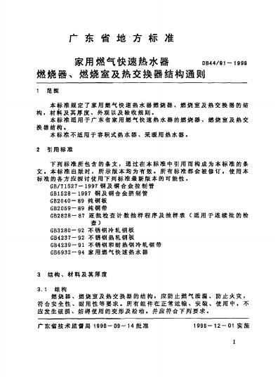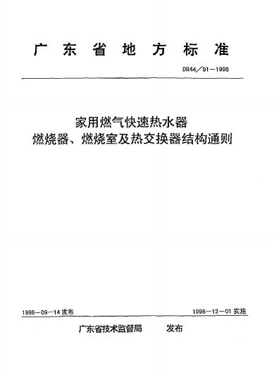 DB44/ 91-1998 家用燃气快速热水器燃烧器、燃烧室及热交换器结构通则