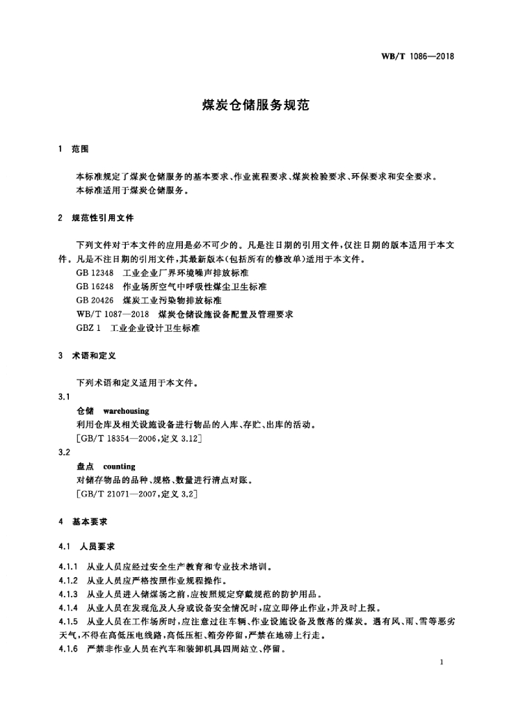 WB/T 1086-2018 煤炭仓储服务规范