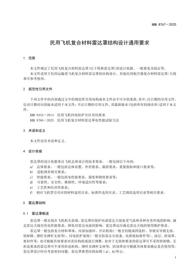 HB 8767-2025 民用飞机复合材料雷达罩结构设计通用要求