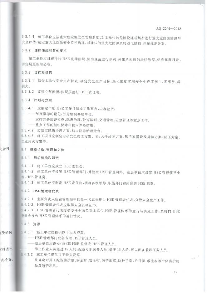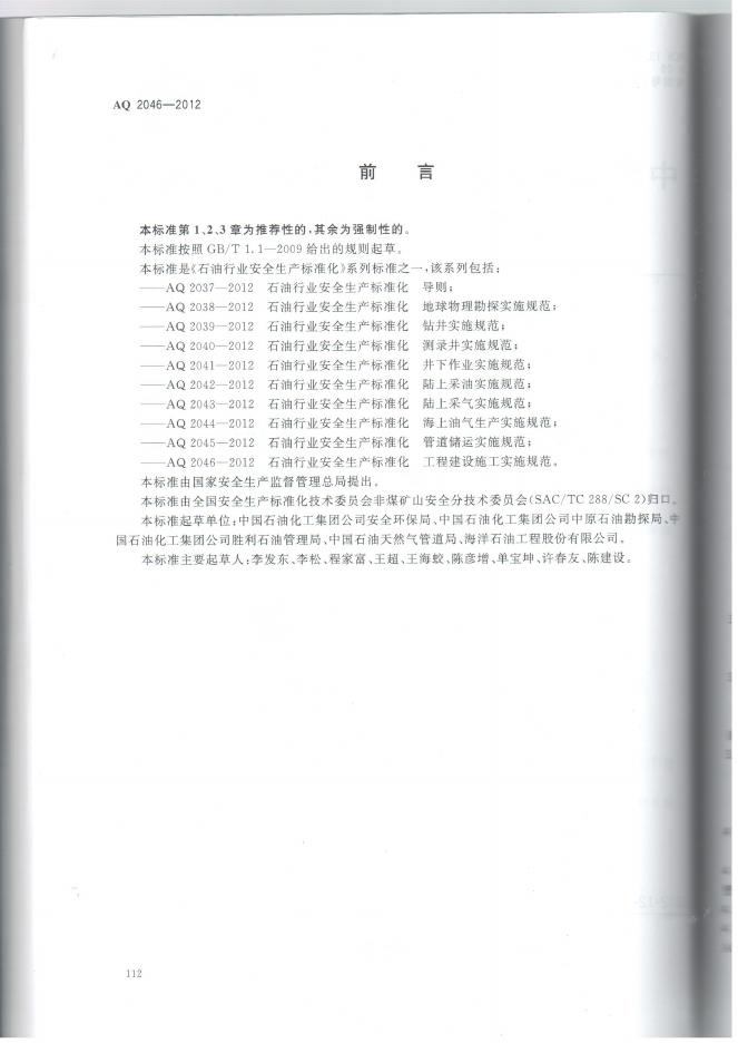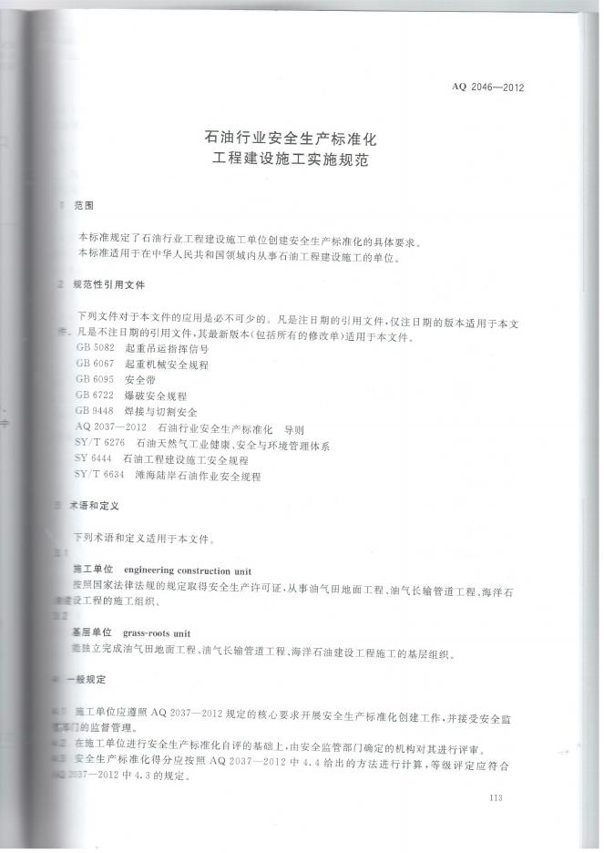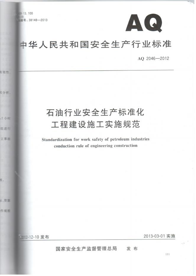 AQ/T 2046-2012 石油行业安全生产标准化 工程建设施工实施规范